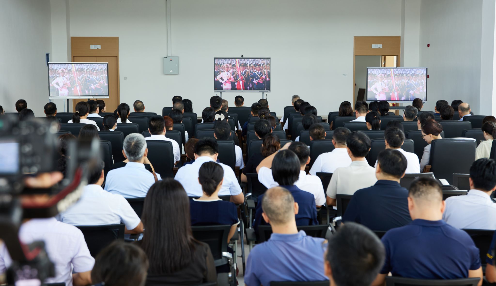 9月3日上午,纪念中国人民抗日战争暨世界反法西斯战争胜利80周年大会在北京天安门广场隆重举行。海南警察学院全体教职工集中收看大会盛况直播,共同见证这一激动人心的历史时刻。