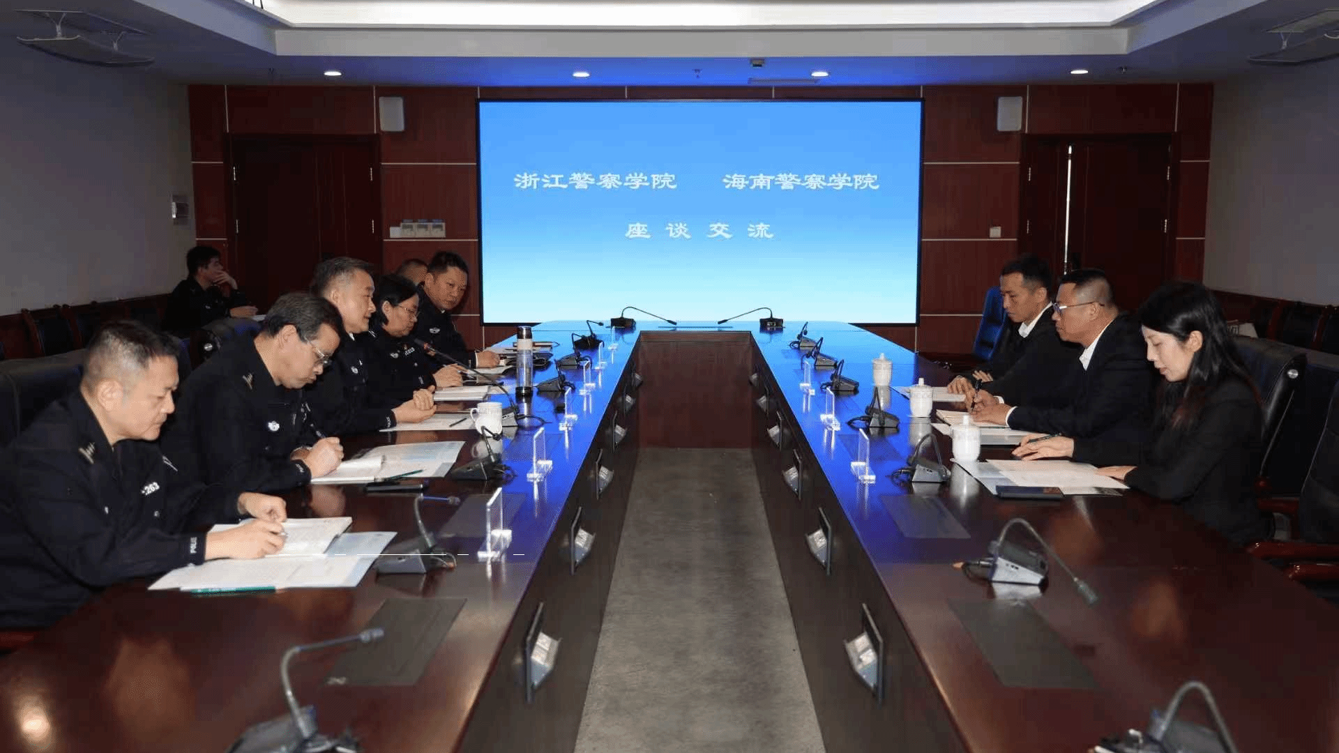 浙江警察学院办公室、培训学院、国际学院、警指学院相关负责人,海南警察学院党政办公室、教务处有关负责同志参加座谈。