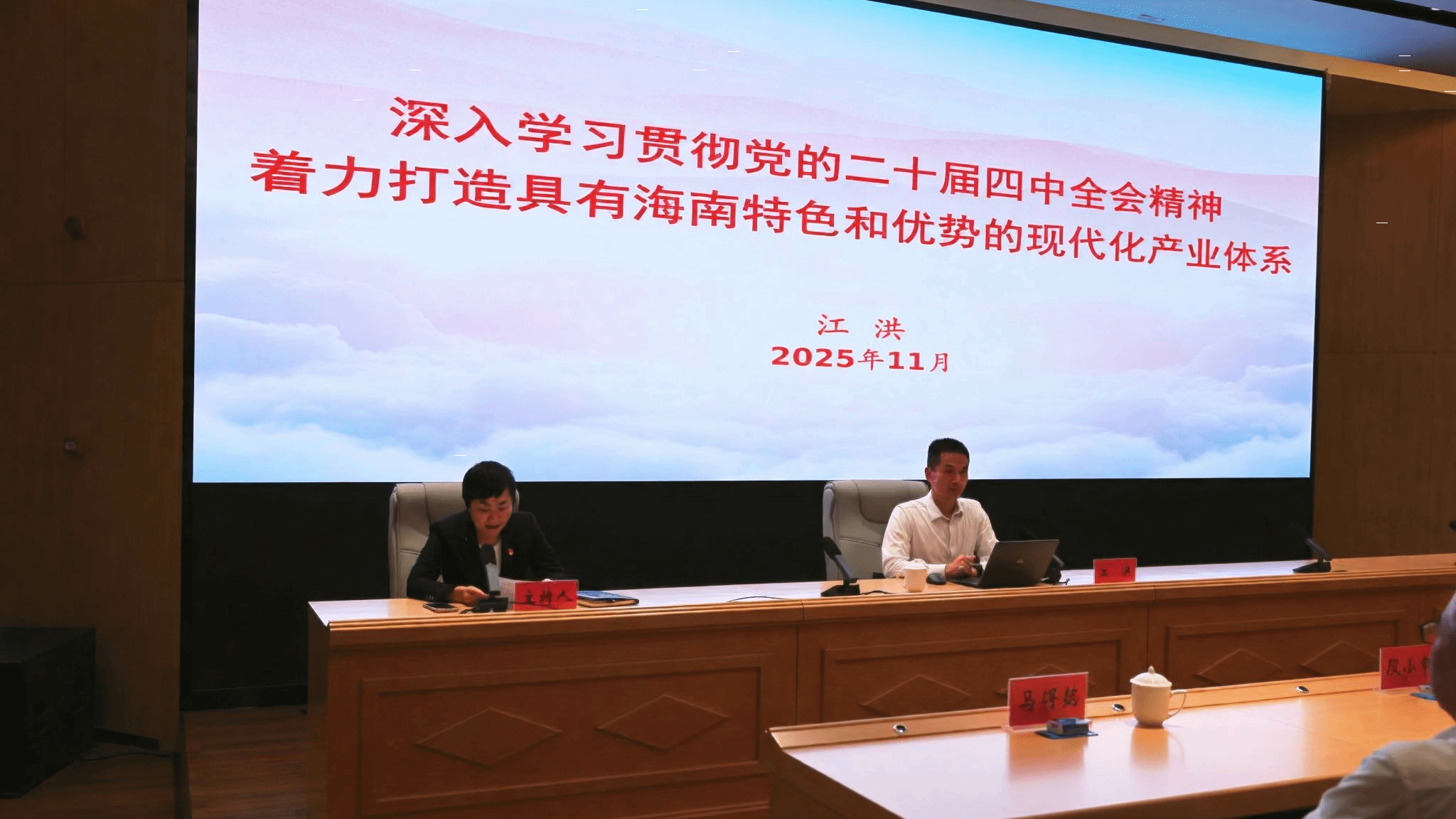 讲座紧紧围绕党的二十届四中全会精神的核心要义,系统阐释了全会的重大政治意义、理论意义与实践意义,深入剖析了“十五五”时期在国家发展进程中的关键地位,详细解读了其指导方针、主要目标、战略任务及重大举措,并强调了坚持和加强党的全面领导对于实现各项目标任务的极端重要性。同时结合海南“十四五”产业发展成效、现存问题,详细阐述了“十五五”期间构建具有海南特色和优势的现代化产业体系的发展思路与前瞻性的对策建议。