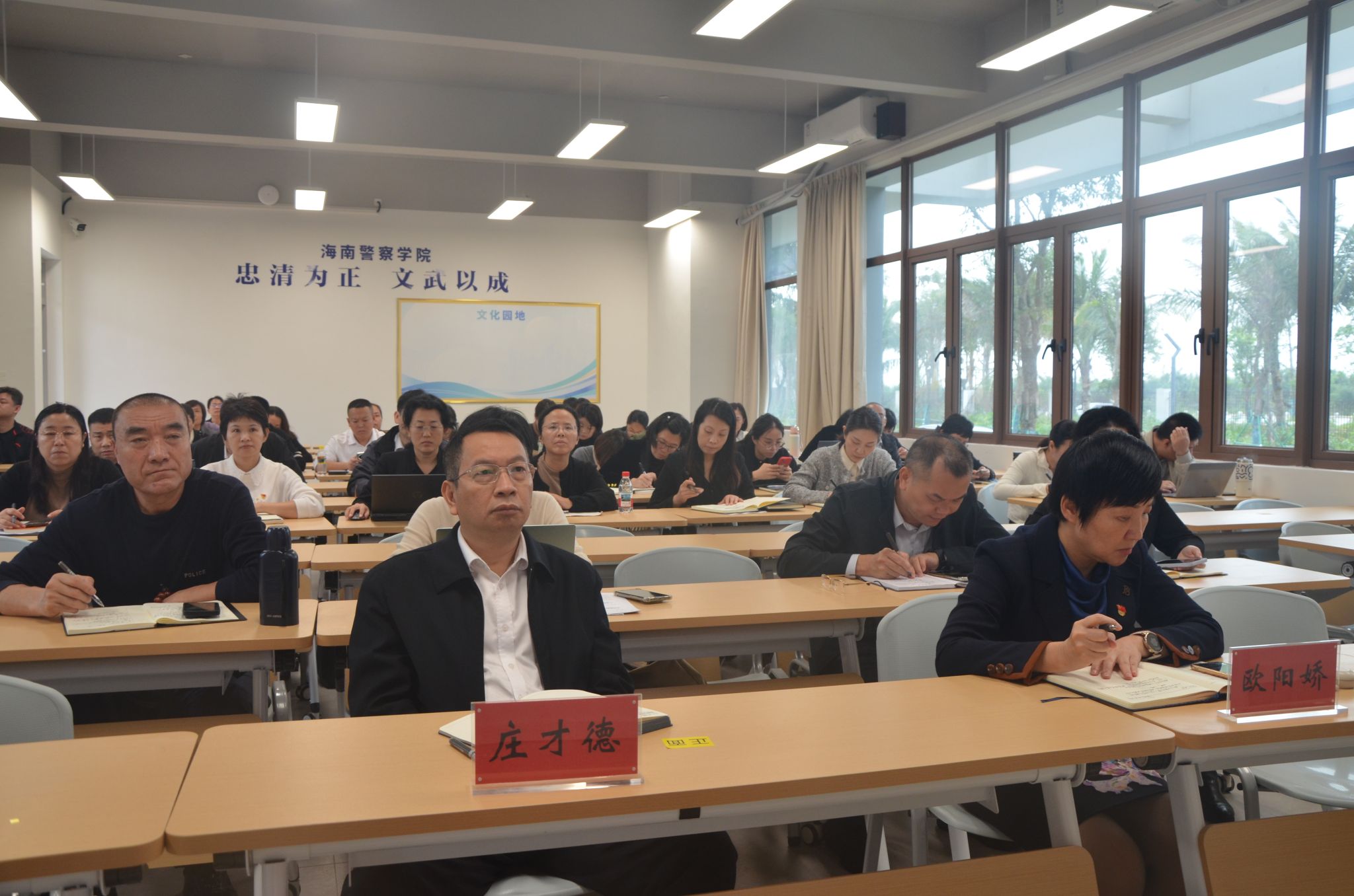12月3日,省委教育工委副书记,省教育厅党组书记、厅长丁晖以“深入学习贯彻党的二十届四中全会精神 加快教育强省建设 服务自贸港发展大局”为题,在教育系统基层党组织书记先锋培训计划省级专题培训示范班上宣讲党的二十届四中全会精神。海南警察学院设分会场,党委书记庄才德、副书记欧阳娇和全体党员集中收看专题培训。