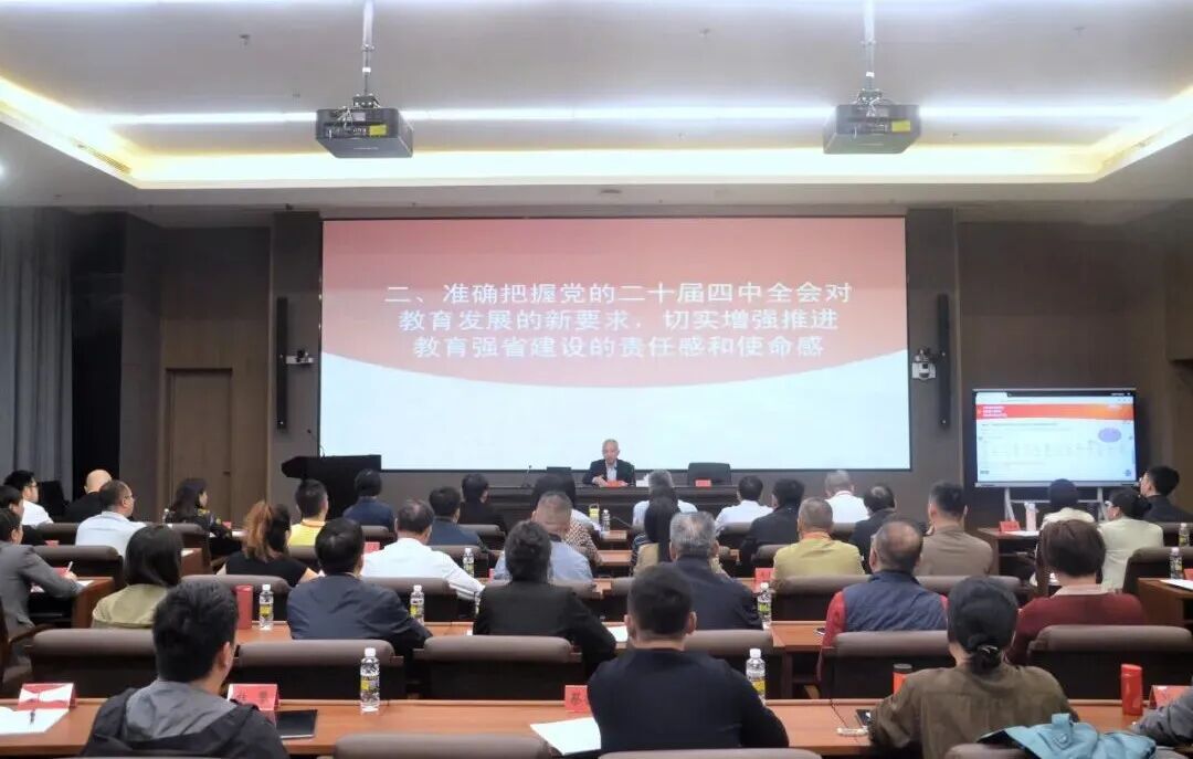 丁晖从“十四五”时期我国发展取得的重大成就,“十五五”时期经济社会发展的重大原则、主要目标、战略任务和重大举措等方面阐释党的二十届四中全会精神,并介绍党的二十届四中全会对教育发展的新要求和教育强省建设要求。他强调,要切实把思想和行动统一到党中央的决策部署和习近平总书记重要讲话精神上来,奋力推动党的二十届四中全会精神在海南教育系统落地见效,谱写中国式现代化海南教育新篇章。