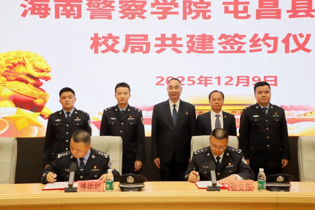 为深化公安教育训练改革,推动理论教学与警务实战深度融合,全力服务海南自由贸易港建设大局,12月9日上午,海南警察学院与屯昌县公安局合作共建签约仪式在海南警察学院举行。海南省公安厅党委委员、副厅长、海南警察学院党委副书记、院长张文东,屯昌县政府副县长、公安局党委书记、局长傅佑能出席会议并致辞,双方相关负责同志参加仪式。