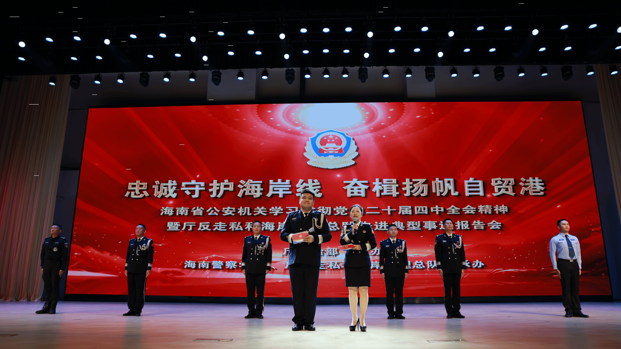 12月26日下午,海南警察学院大礼堂内暖意融融,掌声如潮。“忠诚守护海岸线 奋楫扬帆自贸港”海南省公安机关学习贯彻党的二十届四中全会精神暨厅反走私和海岸管理总队先进典型事迹报告会在此举行。