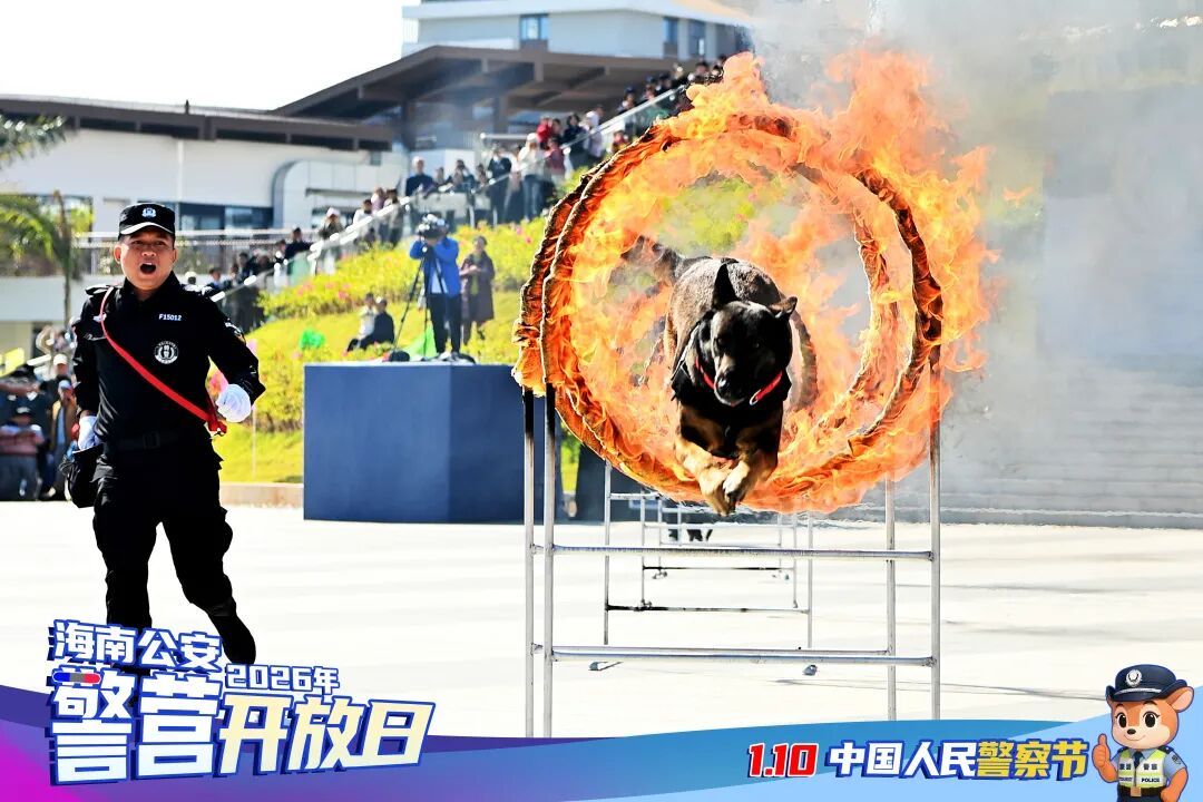 特警盾牌战术操练、警犬综合技能展示、无人机编队飞行演练、交警铁骑驾驶技术表演……在警营开放日活动上,各个展演项目精彩纷呈。海南警方向社会公众充分展示前沿警务装备、各地公安工作成果,并开展普法互动问答等活动,让观众全方位了解、沉浸式体验公安工作的“硬核”与温情。