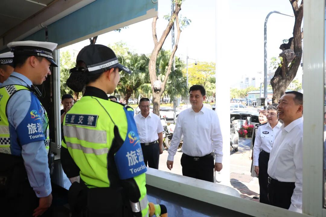 2月15日,蔡朝晖深入三亚市公安局交管支队吉阳大队中信岗和天涯分局友谊派出所,实地查看派出所值班备勤、安保措施落实等情况,听取海南警察学院首届见习生在三亚实习情况和三亚春运交通安保工作情况汇报。他指出,春节期间安保维稳任务艰巨繁重,全体民辅警要以高度的政治责任感和使命感,持续发扬“细致、精致、极致”的工作作风,科学优化勤务部署,细化完善方案预案,强化统筹指挥、安全监管、交通保畅、服务保障,全力做好春节旅游安保各项工作,展现三亚文化旅游名城良好形象。