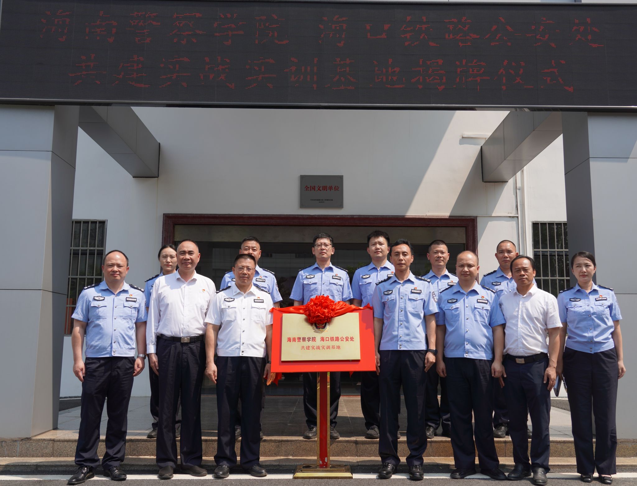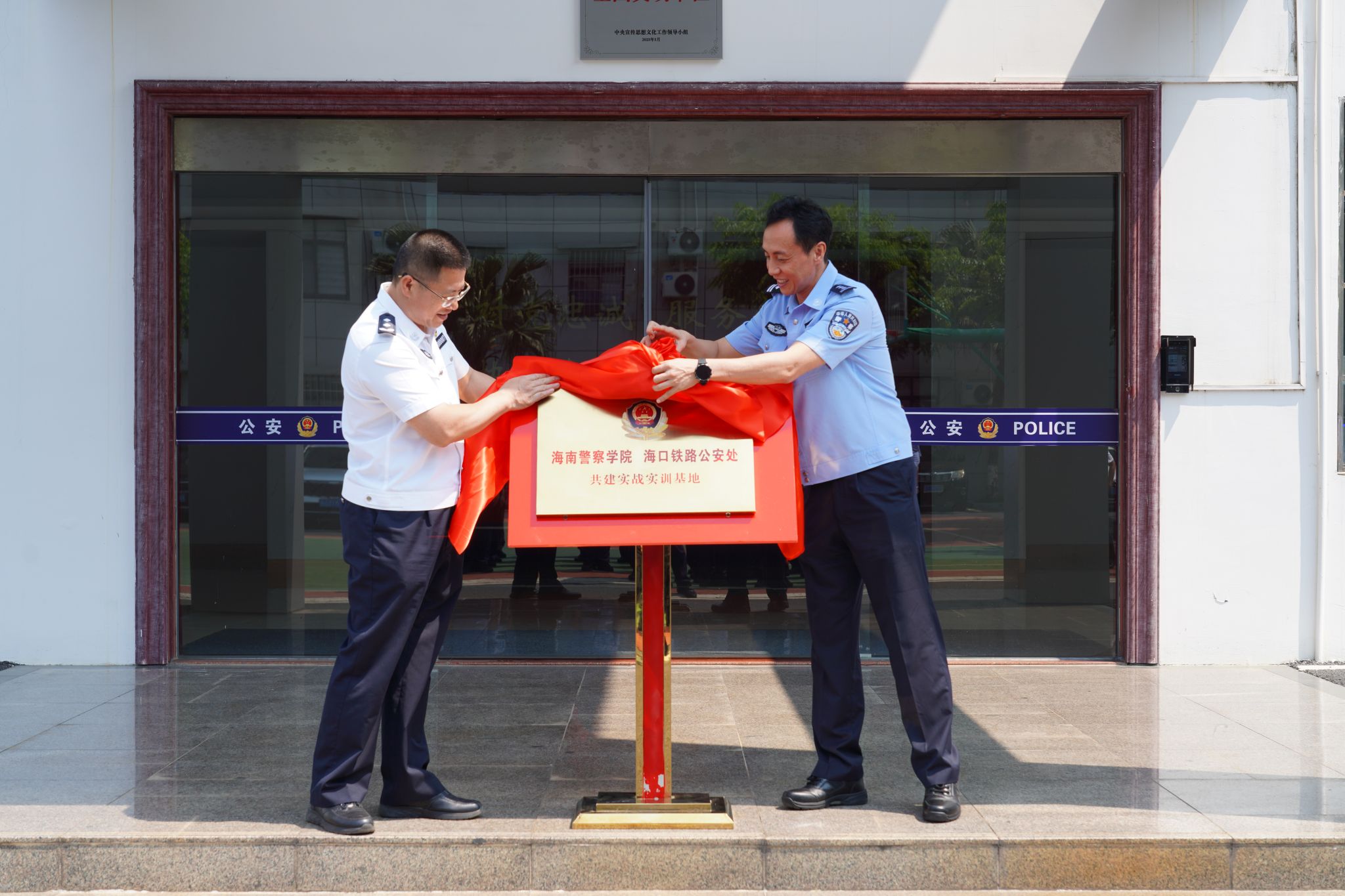 仪式上,海南警察学院与海口铁路公安处签署战略合作协议,并举行“实战实训基地”揭牌仪式。