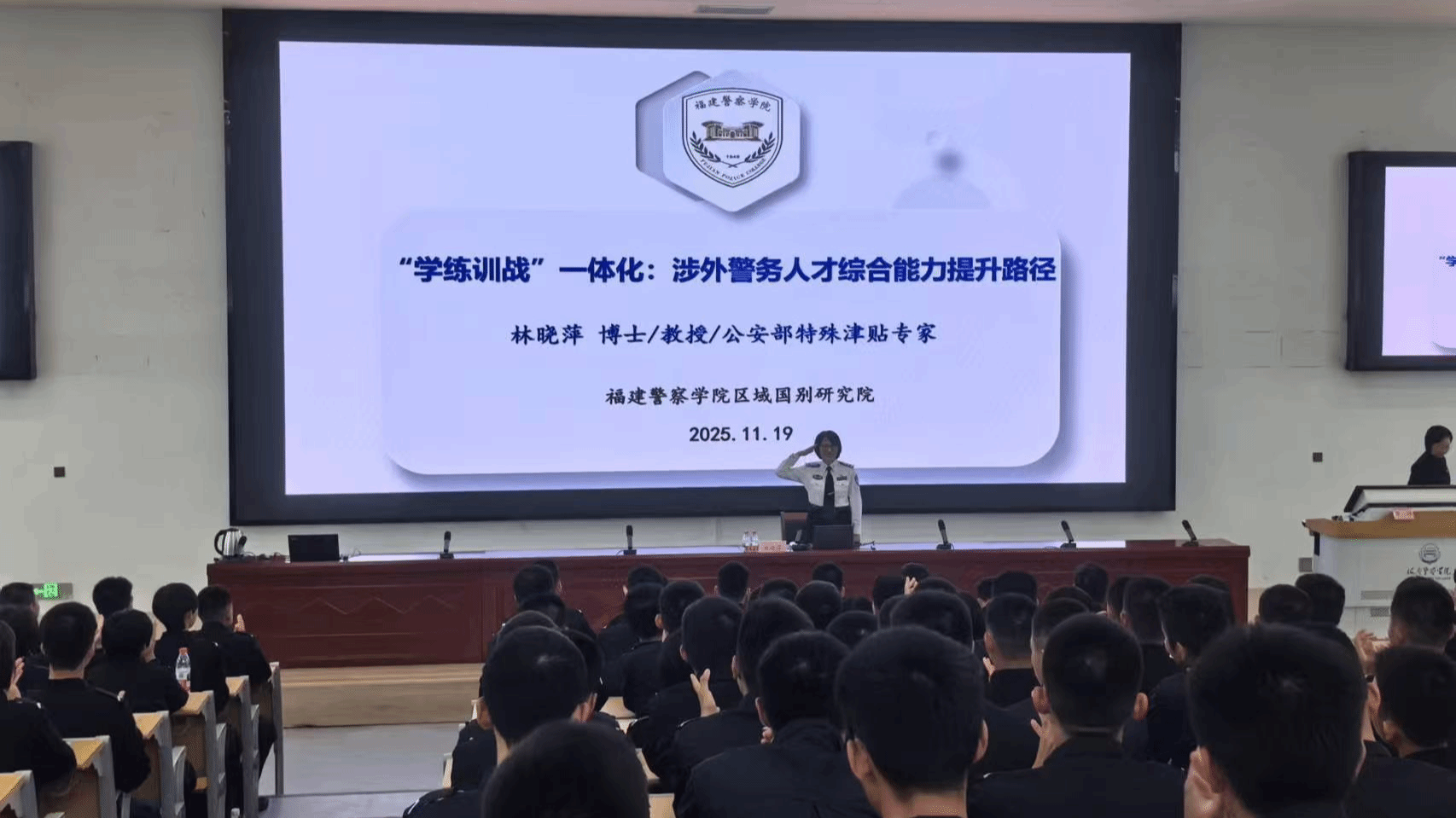 近日,海南警察学院邀请福建警察学院区域国别研究院院长、全国优秀教师、享受公安部特殊津贴专家林晓萍教授,为2025级全体学生做涉外警务英语专题讲座。
