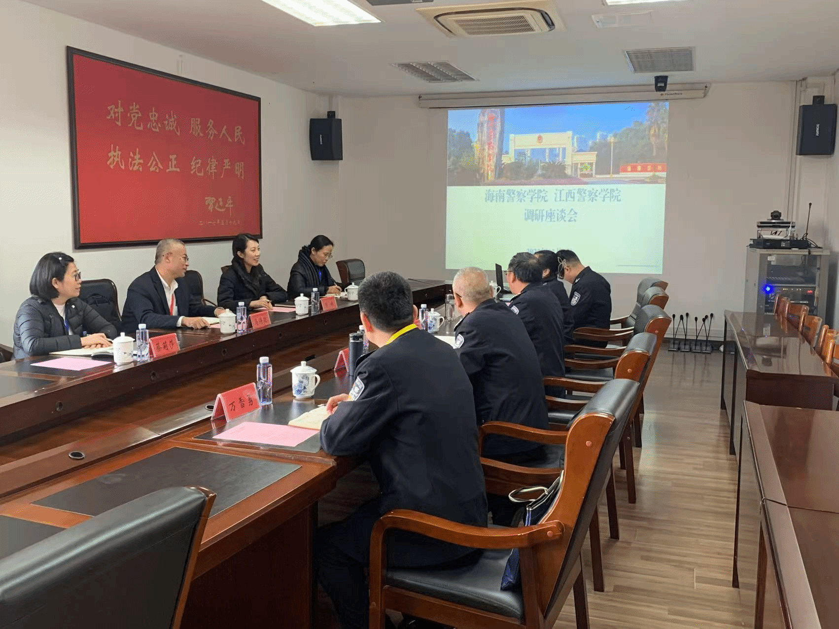 会议期间,江西警察学院党委副书记、校长燕晓华与海南警察学院与会人员进行了座谈。双方就学科建设、特色课程建设、教学管理、科研合作等内容进行了深入交流。双方达成共识,期待未来进一步加强交流,共同探讨公安教育创新发展模式。