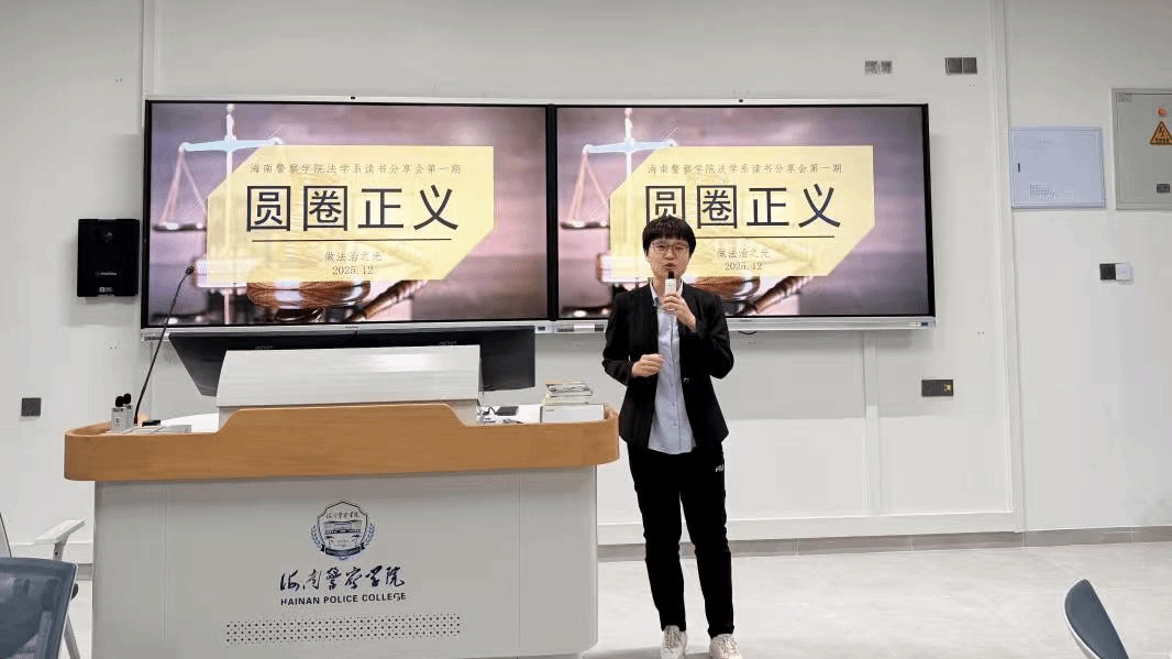 墨香盈室,智启芳华。12月3日晚,海南警察学院法学系“海警法韵”2025年第一期读书会于A1-303教室顺利举行。本次读书分享会由法学系教师吴佩芹主持,法学系20余名学生参与活动。